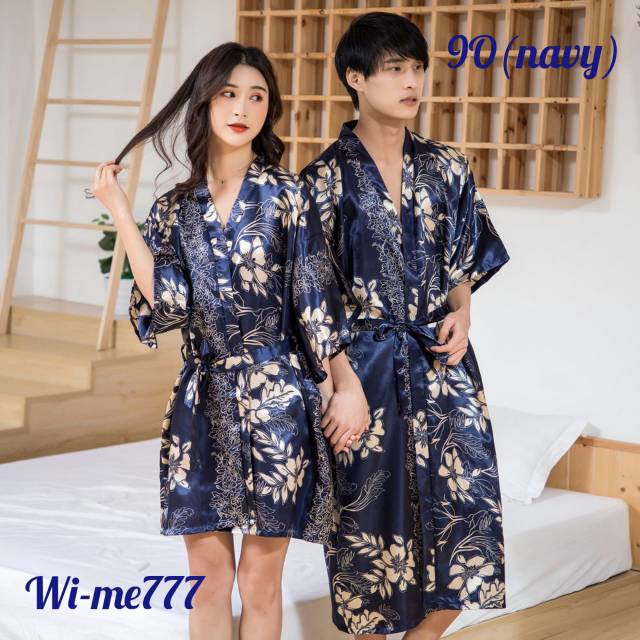 Baju Tidur Kimono Couple Flower Pasangan Satin 9o 9p Shopee Indonesia