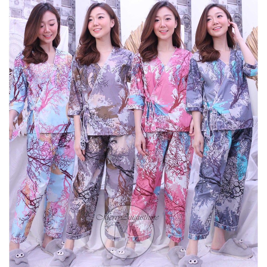 Baju Tidur Piyama Wanita Celana Panjang Kimono Lengan Panjang Import Katun High Quality Shopee Indonesia
