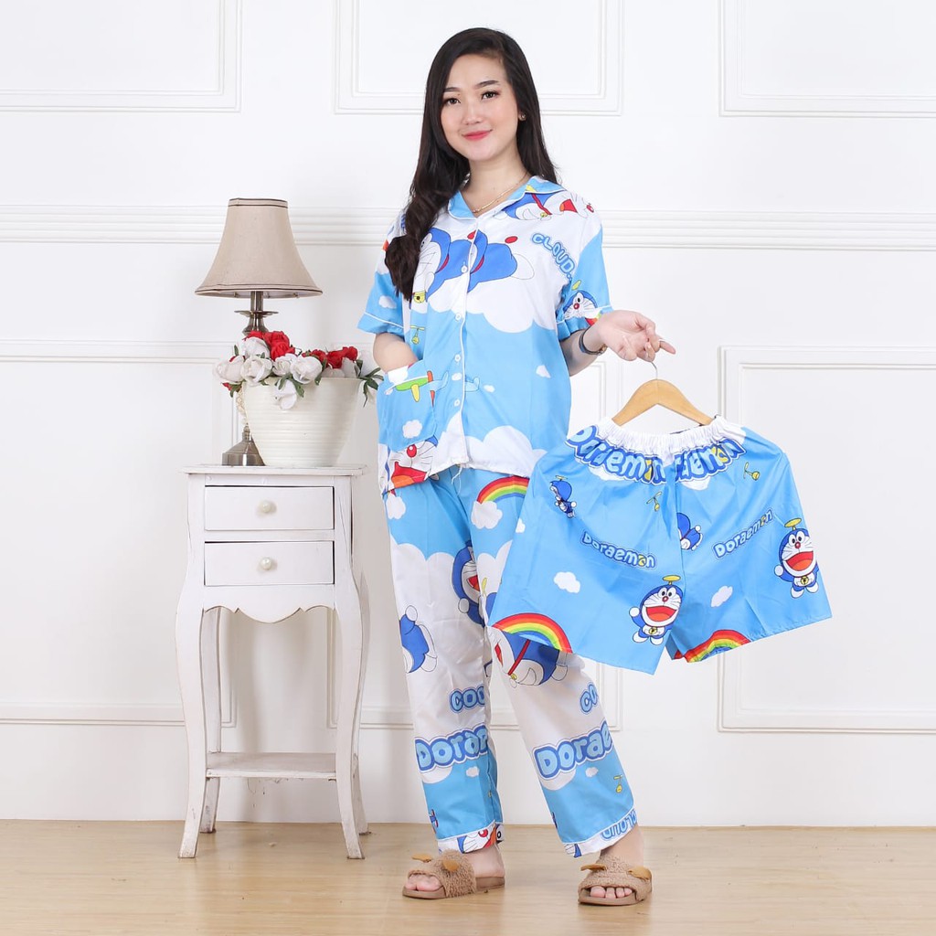 Queenfashion89 Piyama Wanita Dewasa Baju Tidur 3 In 1 Motif Doraemon Awan Fit To Xl Lazada Indonesia